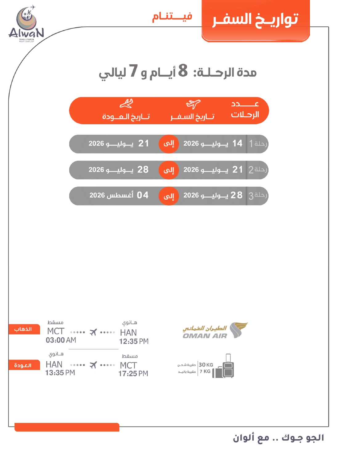 Main international airport serving Hanoi. Direct flights to/from Muscat with Oman Air. Airport transfers included in package.